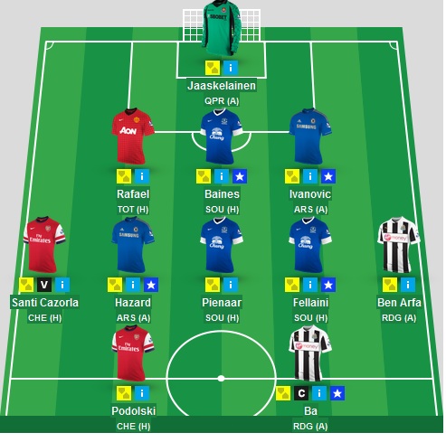 so hari jumaat mcm ni, biasalah..bila dah siap je keje semua, aku pun update la team aku. gameweek #5 minggu lepas mmg teruk la point team aku ni. siap dapat below average lagi. mmg hancus dan kena tinggal kaw-kaw dengan member-member yang lain. minggu ni aku setting team aku mcm ni. ok ke tak?